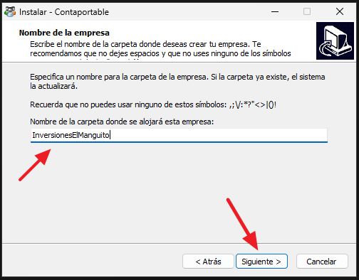 En esta etapa, el proceso de instalación te pedirá que definas un nombre para la carpeta donde se almacenarán todos los archivos del programa. Es importante que esta carpeta tenga un nombre corto; así mismo, no puedes utilizar caracteres especiales.